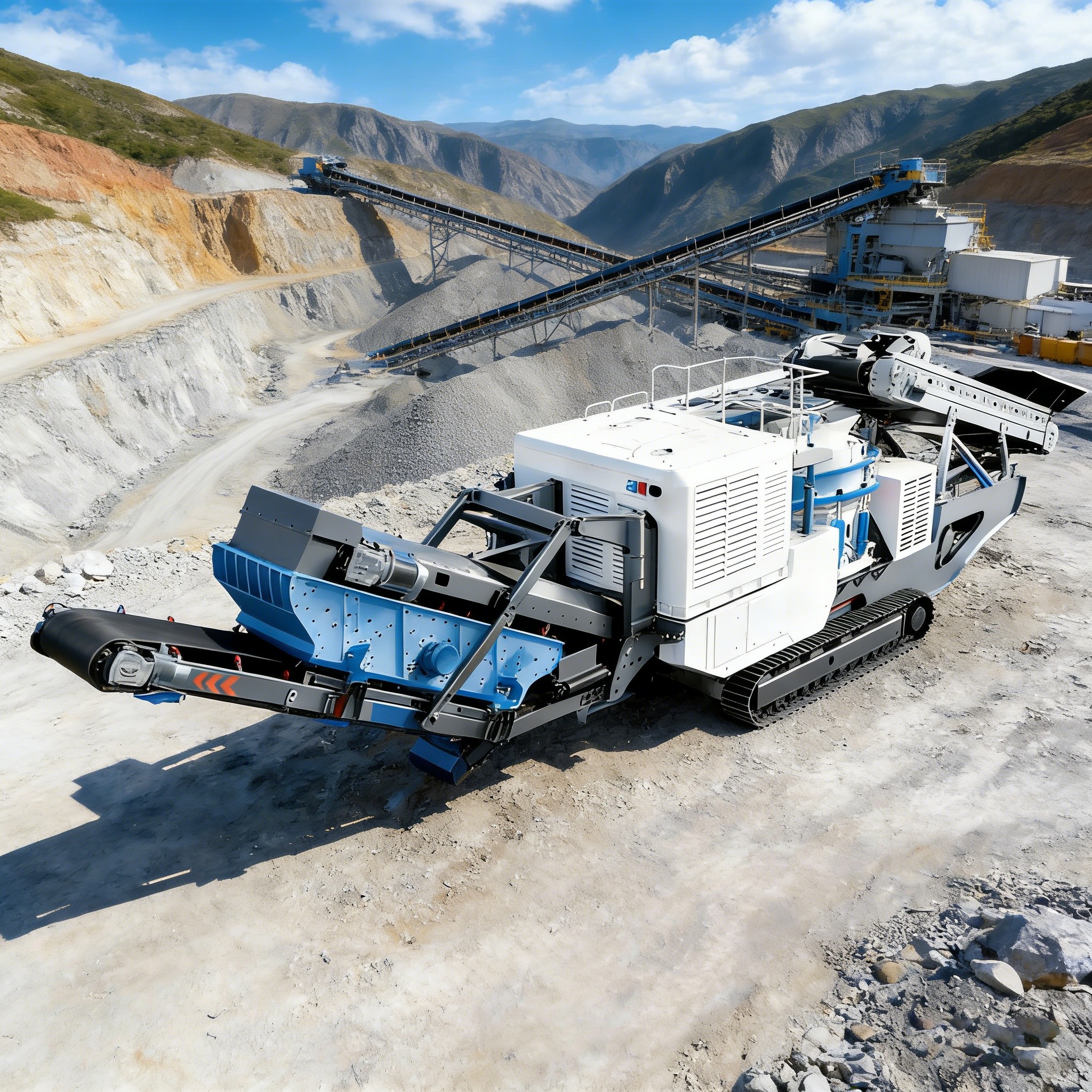 Nhà máy nghiền và sàng lọc di động bánh xích, còn được gọi là trạm nghiền di động bánh xích, là một đơn vị nghiền và sàng lọc di động tất cả trong một . Nó có khung bánh xích được điều khiển bằng thủy lực, cho phép di chuyển dễ dàng và hạn chế tối thiểu về môi trường làm việc, quy mô địa điểm, nguồn điện hoặc điều kiện nền móng.