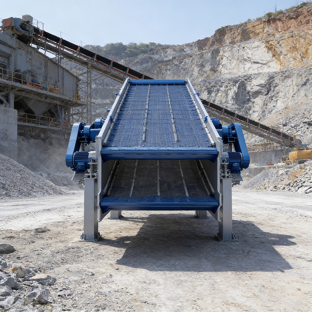 Có thiết kế trục chính xuyên trục chắc chắn không có bộ truyền động hoặc bánh răng trung gian, giúp giảm thiểu lỗi truyền động và cải thiện đáng kể độ ổn định khi vận hành. Cấu trúc này nâng cao độ tin cậy của sàng rung, ngay cả trong điều kiện sàng lọc tải nặng liên tục ở các mỏ đá.